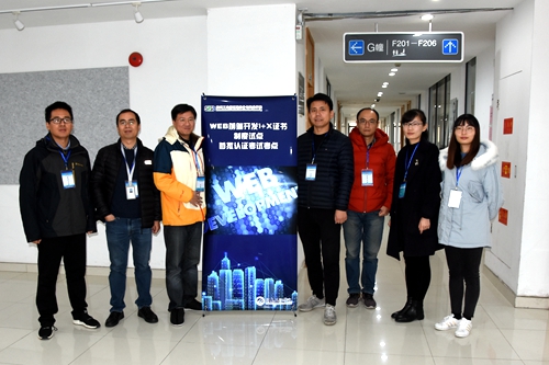 12月21日上午,我校作为全国首批Web前端开发1+X证书制度工作试点,在至能楼F204、F206正式启动了认证考试,学校教学服务中心主任杜梓平、副主任顾家乐,信息工程学院院长刘正共同见证了此次认证考试。