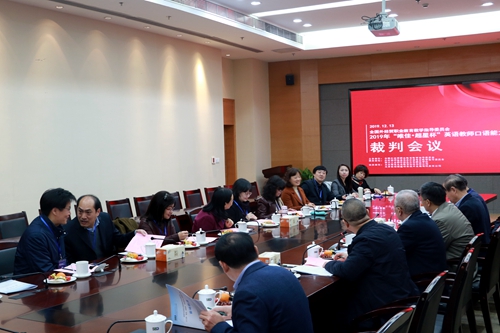 12月13日上午,全国外经贸职业教育教学指导委员会2019年英语教师口语能力大赛裁判会议在我校言子楼B416会议室举行,赛事组委会成员及全体裁判参加了会议。