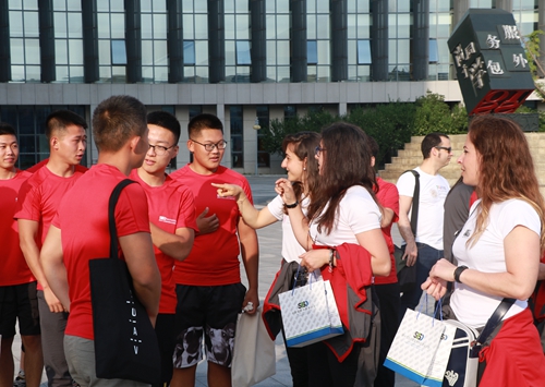 今年已经是意大利威尼斯大学生龙舟联队第四次与我校进行互访,四年来持续的龙舟交流活动成为了联系两座城市、两个国家、两种文化的纽带。赛场上,两国青年共同奋斗,以赛会友,共庆端午;赛场外,我校还与威尼斯大学龙舟联队的队员们进行文化交流,介绍中国传统文化历史,让他们领略江南吴地韵味。