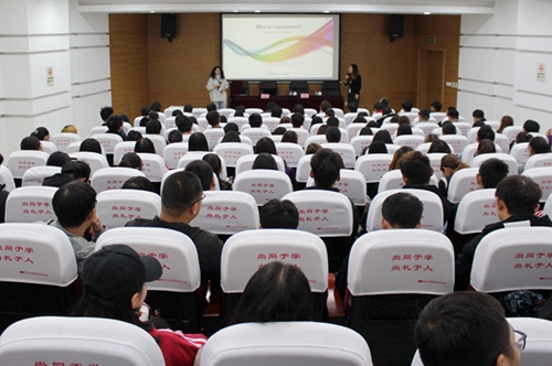 Shikha对科纬隽公司的服务外包业务作了详细的介绍,让在场学生对BPO行业有了清晰的概念。同时,梁利霞为学生制定职业生涯规划作了全面指导,她鼓励学生“做更好的自己”,建议学生提前做好知识储备,培养自己的学习能力、问题处理能力和独立工作能力,采取专业的态度,为自己制定短期与长期的计划。