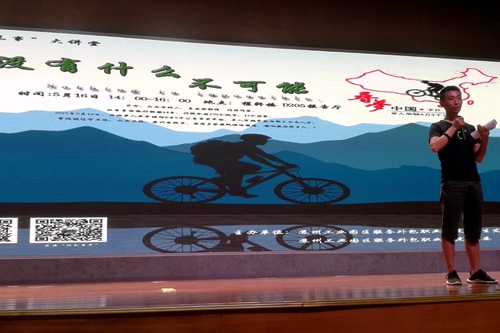 子介在现在向大家介绍了他单车骑行6万5千公里寻梦中国的历程。追梦的路途坎坷,遭遇过各种各样的自然危险,也遇到过豺狼虎豹,但是凭借着坚定的信仰,历经艰辛的他最终也完成了自己的梦想。他用自己的经历告诉大家要怎么树立一个正确的目标信仰,怎么在困境下坚持不放弃、继续走下去。