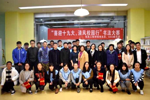 为了加强大学生的艺术修养,丰富校园文化生活, 11月29日下午,我校信息工程学院党总支携手校图书馆共同举办“喜迎十九大,清风校园行”廉洁书法大赛。
