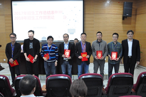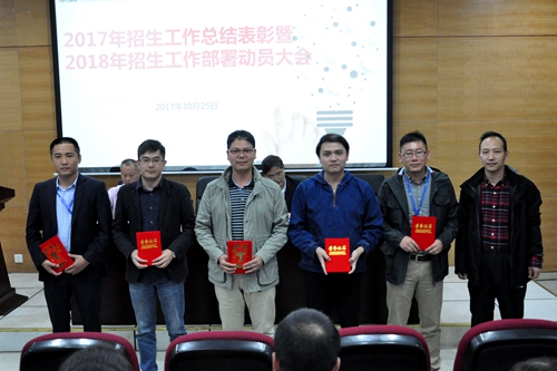 丁志卫宣读了《关于表彰2017年招生工作先进集体和先进个人的决定》,对招生工作中表现突出的淮安组、徐州组、外省组等7个招生工作先进集体及谷瑞、陈永花、蒋建峰等29个招生工作先进个人进行了表彰,严世清、丁志卫、章亦华分别为相关人员颁发了证书。