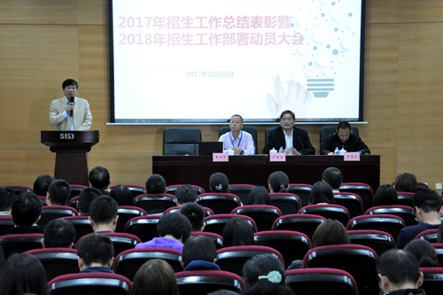 10月25日下午,我校在槎轩楼103会议室召开了2017年招生工作总结表彰大会暨2018年招生工作部署动员大会,学校党委书记、校长严世清,党委副书记、副校长丁志卫,党委副书记、副校长章亦华及全体教职工参加会议,会议由学生发展中心主任杨方主持。