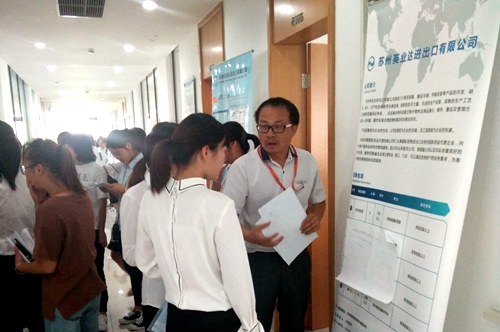 为了给学生提供优质的实习岗位,9月8日下午,商学院2018届毕业生顶岗实习双选会在鲁望楼举办。经过缜密的组织和筹备,商学院通过资质审查、企业招聘岗位筛选等流程严格把控参会企业质量,共邀请到了苏州市银雁数据处理有限公司、江苏苏南万科物业服务有限公司、诚品书店(苏州工业园区)有限公司等40余家企事业单位,共为2018届顶岗实习学生提供了运营助理、客服、外贸业务等岗位近300个。