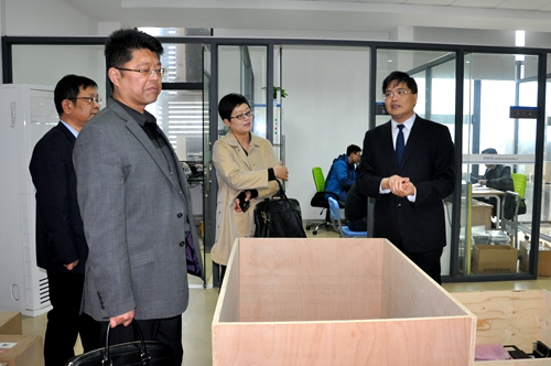 王检阅一行参观了苏州易康萌思电子商务有限公司、苏州金唯智生物科技有限公司等我校独墅湖创客汇入驻企业,并与企业负责人详细交谈,严世清详细介绍了我校在引企入校、校企合作、专业共建等方面的经验做法。