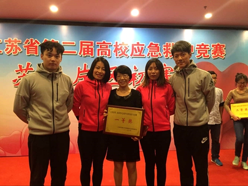 10月23-25日,由省教育厅、省红十字会联合主办,省高等教育学会高校卫生保健研究会承办的江苏省第二届高校应急救护竞赛(苏南片)在无锡江南大学举行,我校由章士凤医生领队,齐晓爽、舒展、汤静、张钊赫组成的师生代表队蝉联此项赛事一等奖。11月中下旬,我校代表队将与其他4支苏南地区代表队参加在南京举行的江苏省高校应急救护决赛。